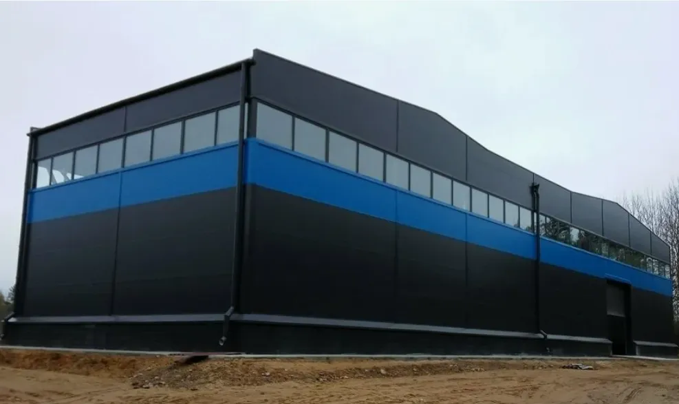 Каркас выполнен из высокопрочной оцинкованной стали с полимерным покрытием — выдерживает экстремальные нагрузки, вибрации и не подвержен коррозии даже при интенсивной эксплуатации. Обшивка — сэндвич-панели 150–200 мм с оцинкованной или алюминиевой фасадной панелью и утеплителем из минеральной ваты — обеспечивают отличную тепло- и звукоизоляцию, огнестойкость (класс НГ) и долгий срок службы. Кровля — с уклоном 22° и системой внутреннего водостока. Все стыки — герметичные, с капельниками и уплотнителями. Срок службы — более 35 лет без капитального ремонта.