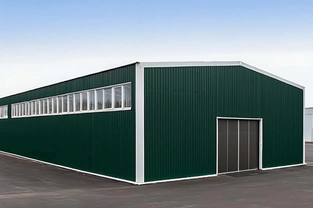 Основа здания — прочный стальной каркас, рассчитанный под нагрузки региона России. Он обшивается сэндвич-панелями с утеплителем из минеральной ваты или PIR-пены. Внешний слой — оцинкованная сталь с полимерным покрытием, устойчивым к коррозии и УФ-излучению. Такая комбинация обеспечивает герметичность, энергоэффективность и эстетичный внешний вид.