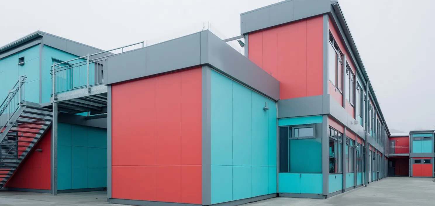В России здание адаптировано под местный климат и застройку: утеплённые стены, энергосберегающие окна, система приточно-вытяжной вентиляции и автономное отопление. Планировка — модульная, с возможностью расширения. Учтены требования пожарной безопасности, доступность для детей с ОВЗ и удобные подъездные пути для школьных автобусов.